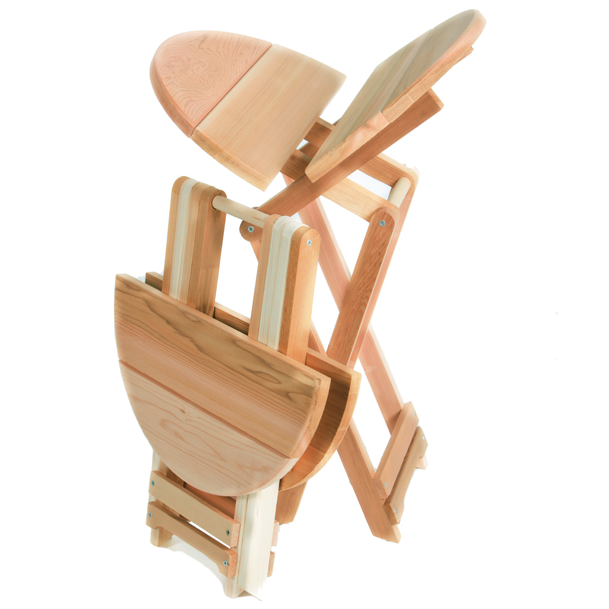 An ideal portable folding cedar table. Folds up to less than 5 inches. Perfect for the beach, cottage deck or smaller balcony - easily folded for off-season storage, lightweight and portable. Suited to pair to with one of our Cedar Adirondack or Athena Chairs.