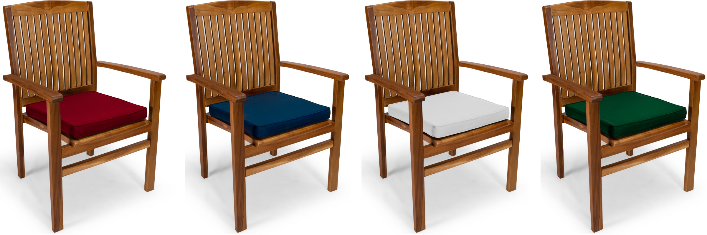 Optional fitted cushions are available below in Blue, Green, Red and White.