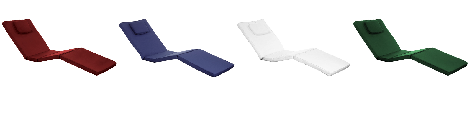 Made with 2 inches of Hi Density Foam covered with a soft-faced washable cotton canvas. A flippable 12 x 8 padded head rest is attached for additional comfort. Sections are hinged at: 28" : 37" : 52" to accomodate various lounging positions. 8 Tie downs are sewn into backside of cushion to keep the cushion properly positioned all the time. A zippered fly is sewn into each cushion section as well as the padded head rest for easy removal and cleaning. Available in Blue, Green, Red, Royal White and White.
