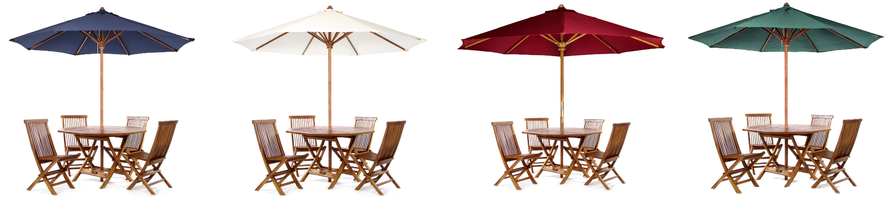 Canvas colors for 8 x 10 Teak Umbrella in the TT6P-O Set Below are available in Blue, Green, Red, Royal White and White